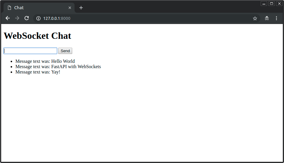 Und Ihre FastAPI-Anwendung mit WebSockets antwortet: