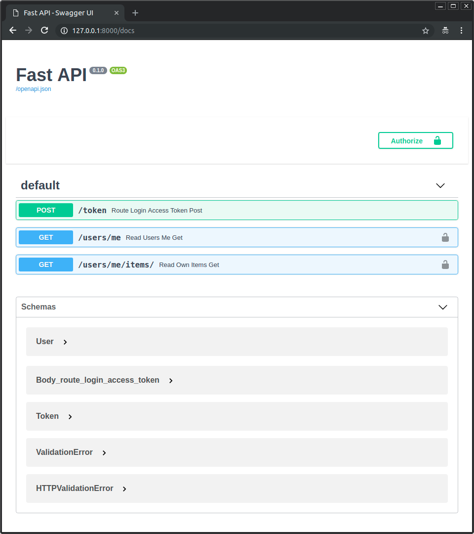 Führen Sie den Server aus und gehen Sie zur Dokumentation: http://127.0.0.1:8000/docs.