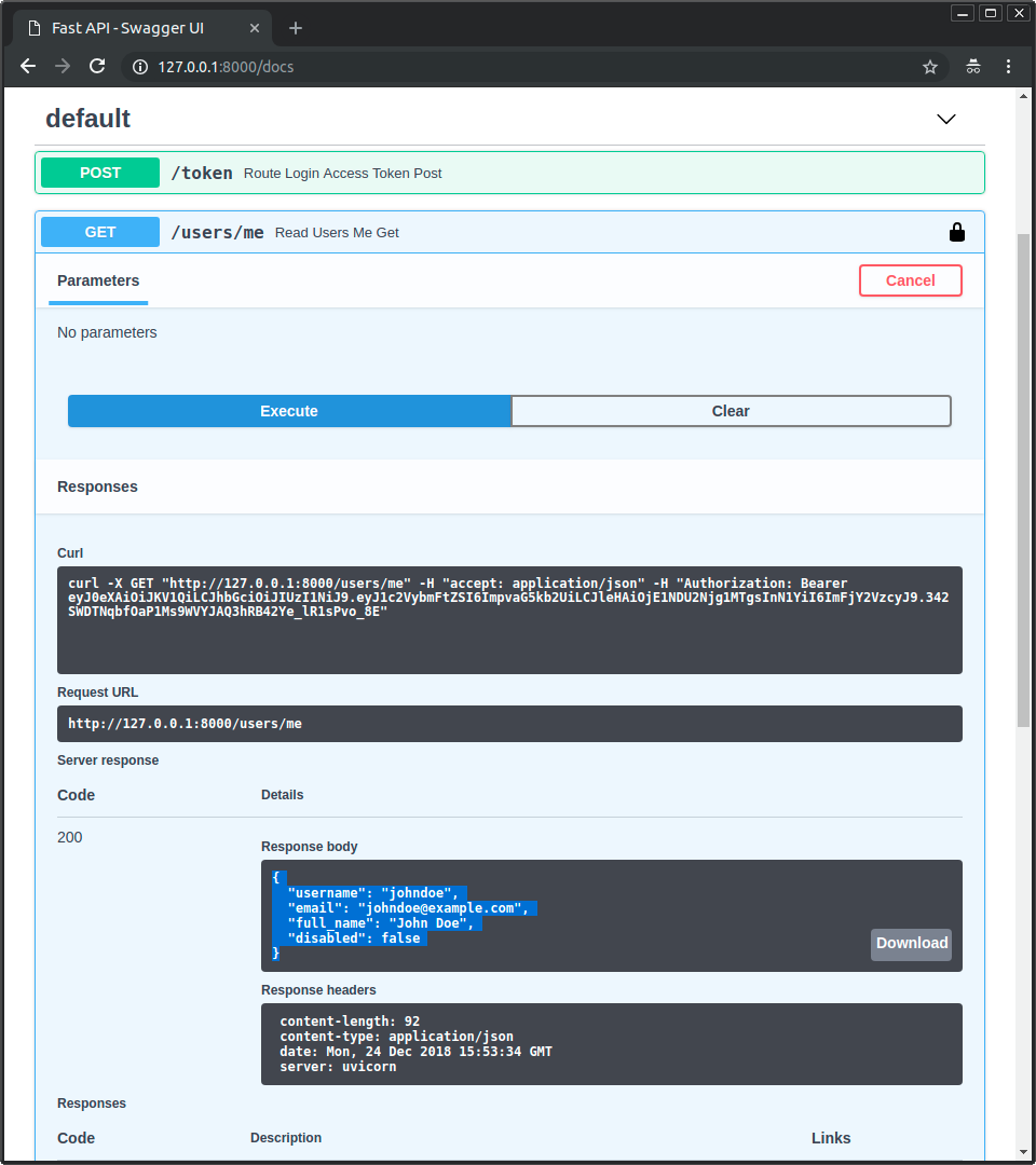 Aktualisieren Sie get_current_user, um den gleichen Token wie zuvor zu erhalten, dieses Mal jedoch unter Verwendung von JWT-Tokens.