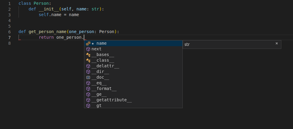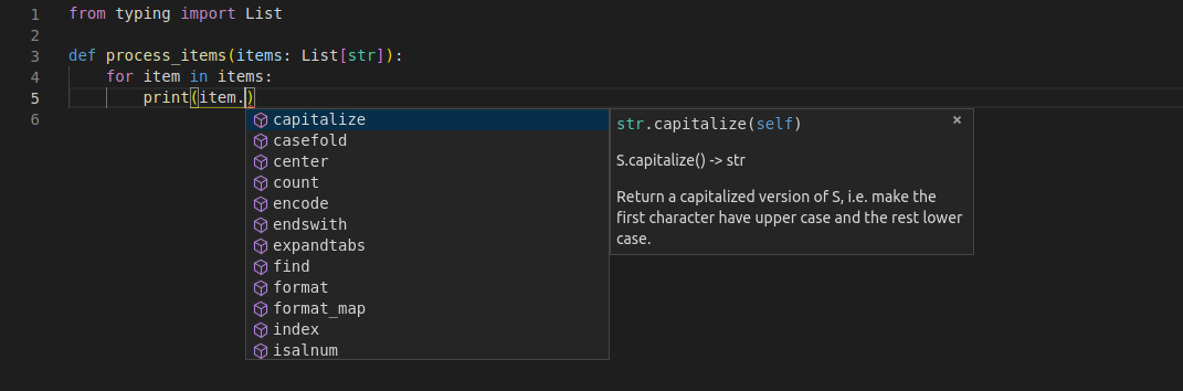 E, ainda assim, o editor sabe que é um str e fornece suporte para isso.